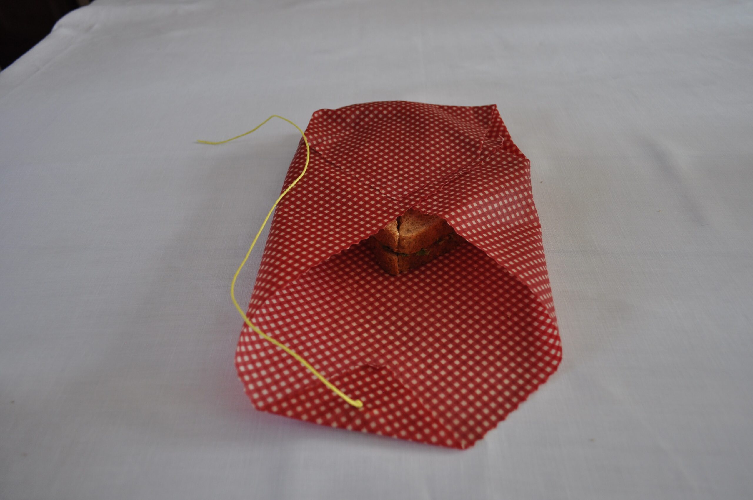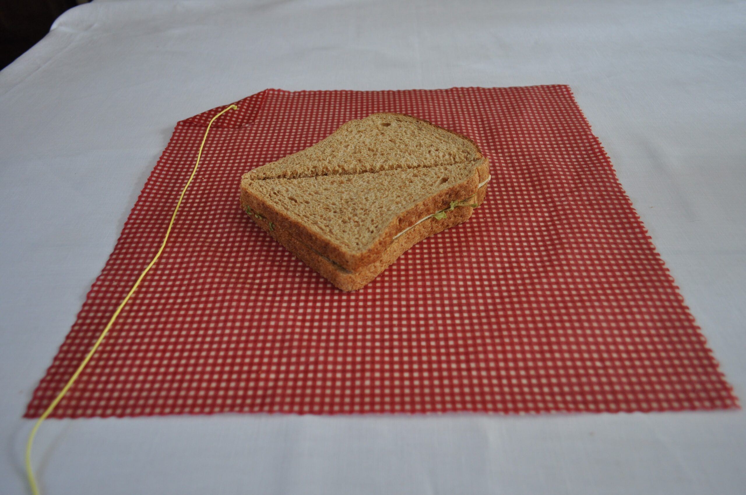 The Sandwich BeeNaturalWaxWraps is designed to cover a normal sandwich, a baguette, or a bun. Once you have prepared it, wrap it in the Wax Wrap, seal the overlapping sides then use the string to tie it all neatly together so when the time comes for the picnic or school lunch, the contents are as fresh and delicious as they were when you made them!